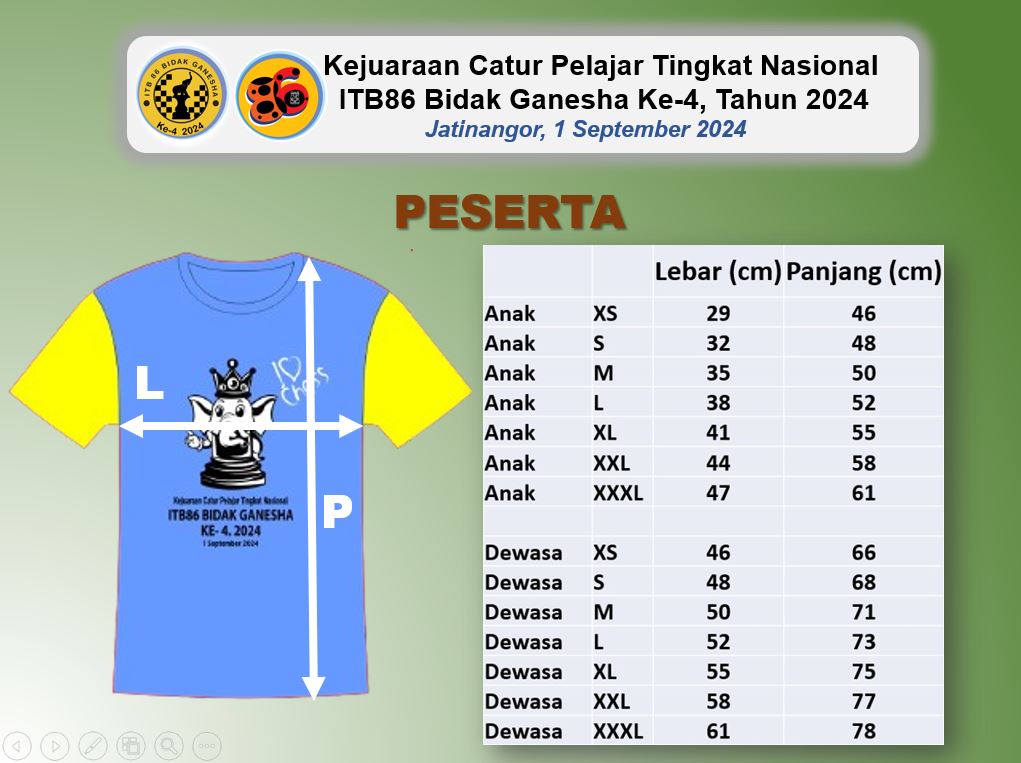 Kami menawarkan merchandise Kejuaraan Catur Pelajar Tingkat Nasional ITB86 Bidak Ganesha ke-4 tahun 2024 secara eksklusif pre-order hanya melalui web Bidak Ganesha. Tidak ada penjualan langsung di hari H. Boleh untuk umum, tidak hanya terbatas peserta. Bisa pesan untuk kakak, adik, bapak, ibu, kakek, nenek, tetangga, pak RT. Boleh. Jangan sampai kehilangan kesempatan memiliki koleksi banyak pilihan merchandise yang keren dan unik khas Bidak Ganesha. Batas waktu order adalah Senin 29 Juli 2024.