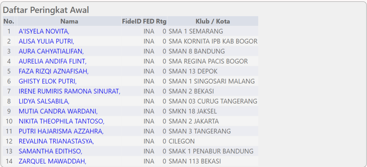 Hasil Pertandingan Kategori SMA Puteri :