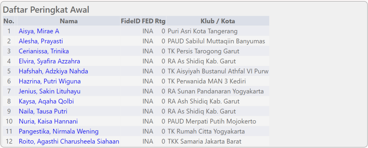 Hasil Pertandingan Kategori PAUD Puteri :
